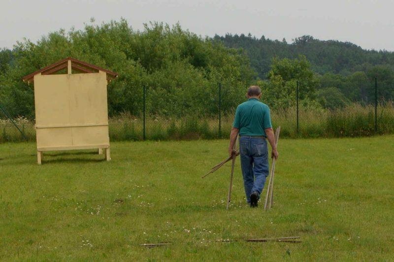 Manfred macht sich hier schon mal auf den Weg, um die Abgrenzung der Ausstellungsringe festzulegen. Das Gelände war wie immer in einem sehr guten Zustand, sauber gemähte, frische Grasnarbe und schön ebene Flächen.