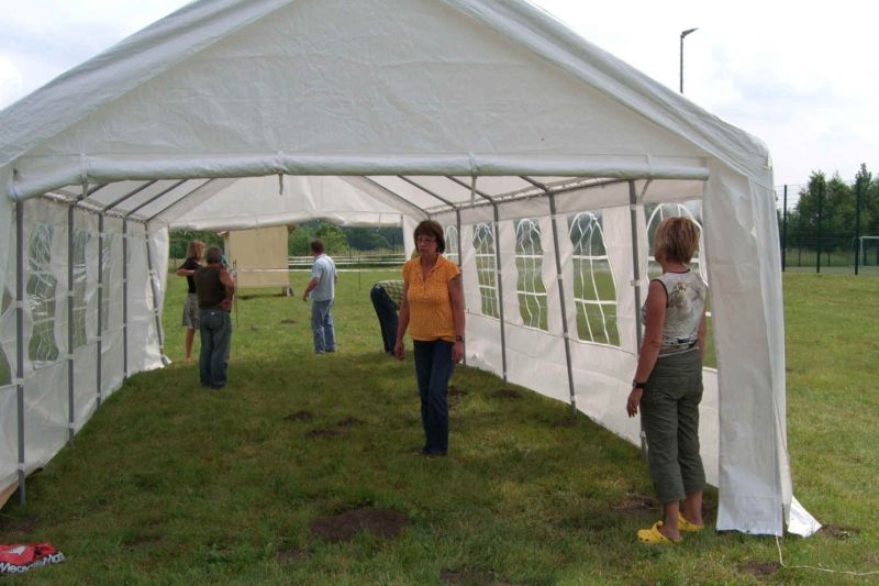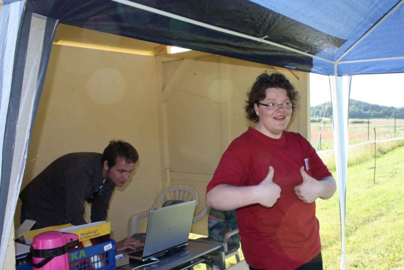 Hier macht man sich Gedanken, mit welchem der Zelte der Aufbau beginnen sollte. Und auf dem nächsten Fotos geht’s es schon zur Sache. Übrigens fanden wir es ganz toll, dass wir beim Aufbau Hilfe von Mitgliedern aus anderen Landesgruppen bekamen. Dafür ein großes Dankeschön an Jörg Arendt, Günter Goldbach und Elke Bäumerich.