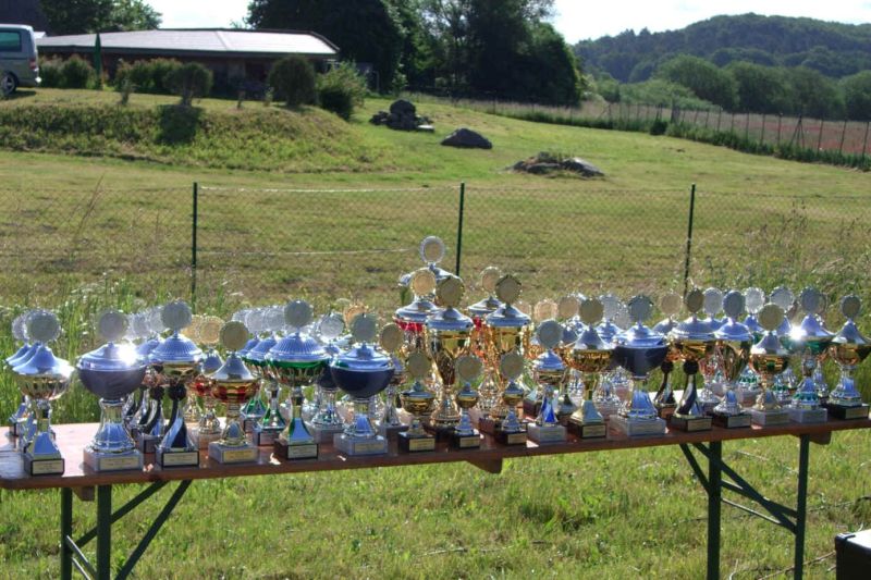 Die Pokale waren ausgepackt und standen in Reih und Glied zur Abholung für die glücklichen Gewinner bereit. Die Mitteilungstafeln für die Platzierungen waren vorbereitet ….