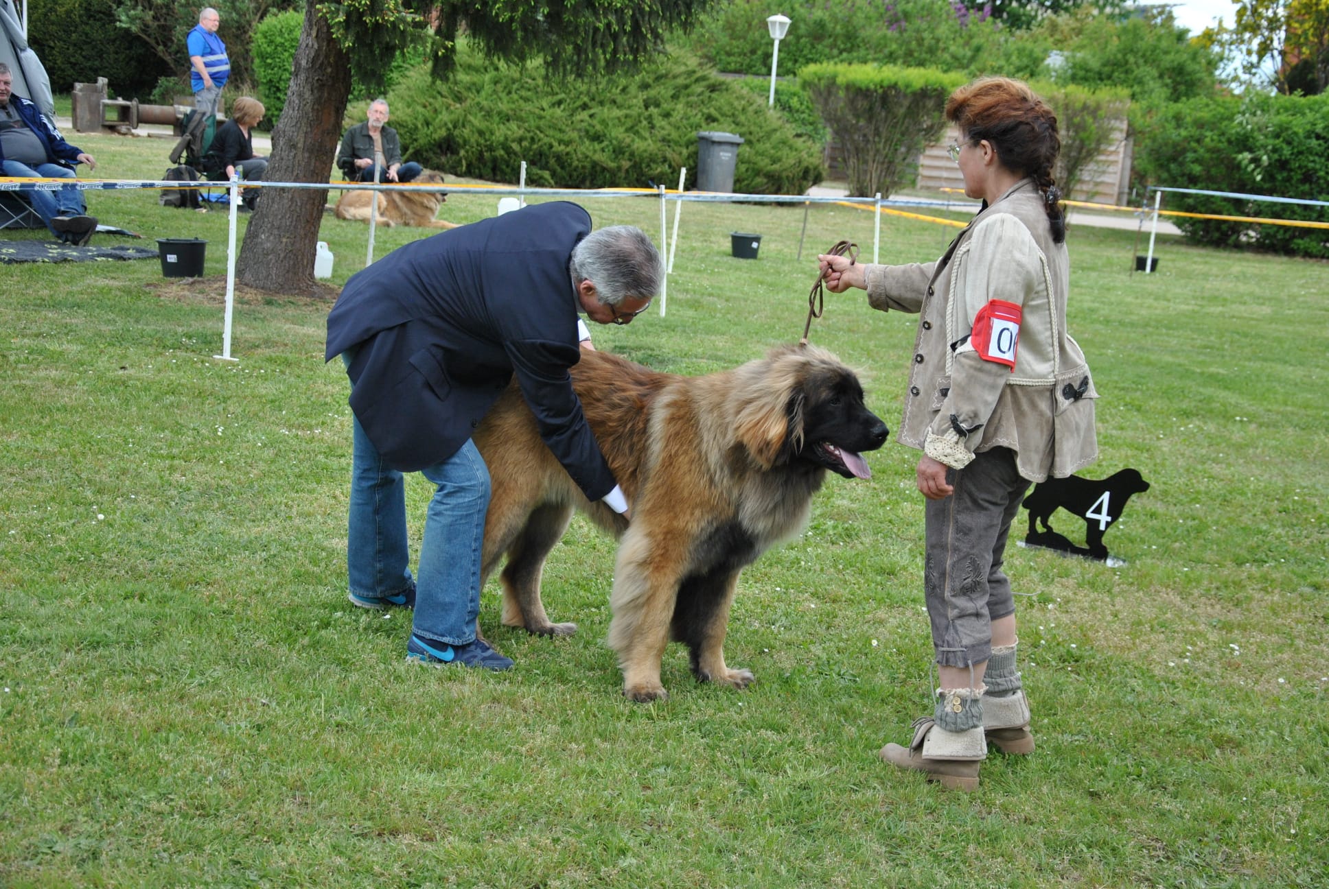 Nach einer kurzen Ansprache unserer 1. Vorsitzenden Verena Lukat und unserer Ausstellungsbeauftragten Susanne Sturm kann das Vorführen unserer schönen Leonberger gegen 9:30 Uhr beginnen. Richter Willi Güllix ist angereist, um die Hunde zu bewerten. Rüden sind in sechs, Hündinnen in fünf Klassen gemeldet. Der jüngste Welpe ist gerade einmal vier Monate alt und lässt die Herzen aller Besucher höher schlagen. Für große Freude bei allen sorgt auch die Teilnahme einer zehn Jahre alten Hündin, der von Willi Güllix ein toller Allgemeinzustand bescheinigt wird und die zusätzlich zu ihrem Pokal in der Veteranenklasse mit der Ehrenplakette des VDH gewürdigt wird.