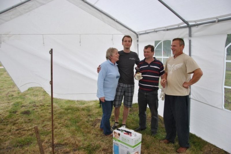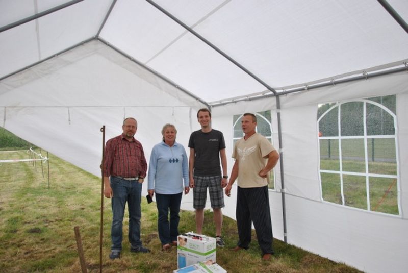 Und wie man hier sehen kann, war das Ganze auch ´ne lustige Einlage. Inzwischen waren beim Zeltaufbau die erforderlichen „strategischen" Entscheidungen getroffen. Der Rest war Routine. Den sollten Dirk, Ute und Hans-Joachim ohne weitere Anleitung hinbekommen, so dass sich Daniel anderen wichtigen Dingen zuwenden konnte.