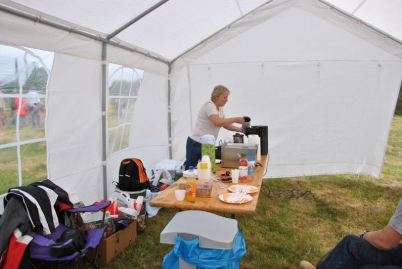 Bockwurst mit Brot und Salat, kalte Getränke, duftender Kaffee und lecker Kuchen satt sowie ein schattiges Plätzchen waren da, um zwischendurch für die Leos und die Menschen Entspannung anbieten zu können.