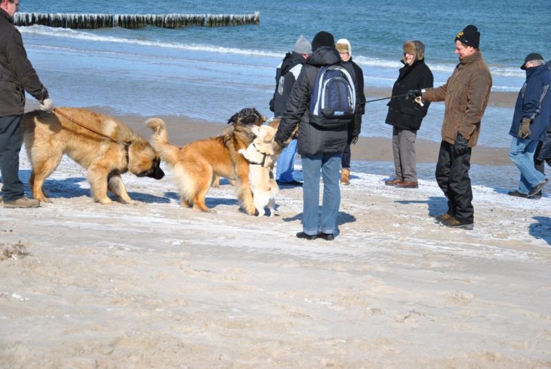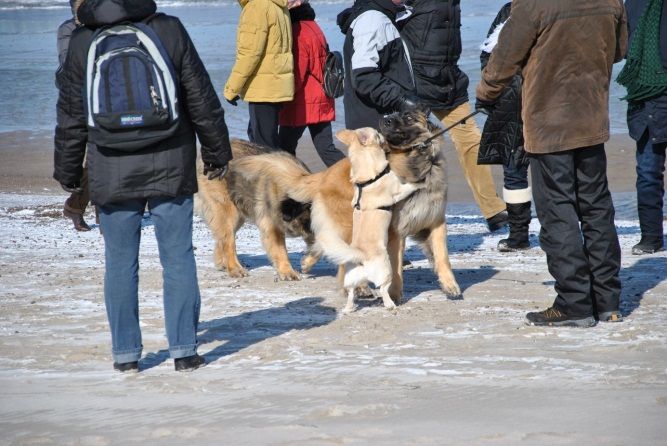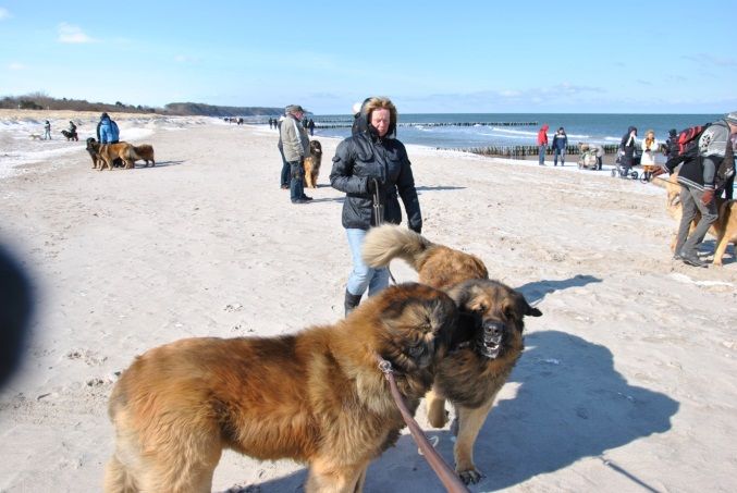 Wie immer haben wir mit unseren schönen Hunden auch dieses Mal die Aufmerksamkeit vieler Strandbesucher auf uns gezogen. Dadurch ergaben sich tolle Kontakte mit anderen „Touris" und viele Gelegenheiten zu Gesprächen über unsere Leonberger. Wie ihr auf den folgenden Bildern sehen könnt, ließen sich andere Hunde sogar zu spontanen Umarmungen unserer Leonberger hinreißen ;-)