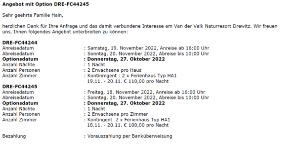 Manfred hat folgendes Angebot ausgehandelt, welches bis max. 27. Oktober gültig ist: