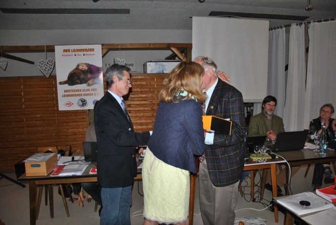 Albert Hellener und Gerhard Knape, beide Mitglied im DCLH seit 1969 bzw. 1961, wurde die Ehrenmitgliedschaft des Deutschen Clubs für Leonberger Hunde verliehen.