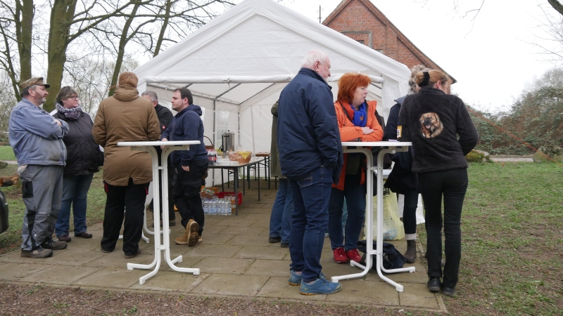 Ein sehr langer Tag für alle Beteiligten. Damit die Kräfte nicht ganz schwanden, sorgte Jörg im Versorgungszelt für das leibliche Wohl und hatte unter anderem Gulasch organisiert. Angelika und Bernd brachten Schnittchen mit, und zum Kaffee am Nachmittag versorgten uns Anja, Simone und Regina mit selbst gebackenem Kuchen.
