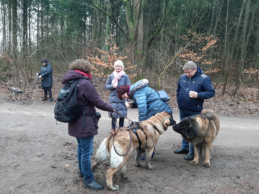 Auf unserer Homepage schon seit langem angekündigt, war es nun endlich soweit. 19 Zweibeiner mit 10 Vierbeinern folgten der Einladung unserer Landesgruppe zum Neujahrsempfang. Beinahe pünktlich um 10.00 Uhr konnten sich Mitglieder, Gäste, Leonberger und „Fehlfarben“ begrüßen. Corona-bedingt ohne die gewohnten Umarmungen dennoch herzlich, gab es viel „Hallo, lange nicht gesehen“, „Wow ist die Kleine/der Kleine groß geworden“.