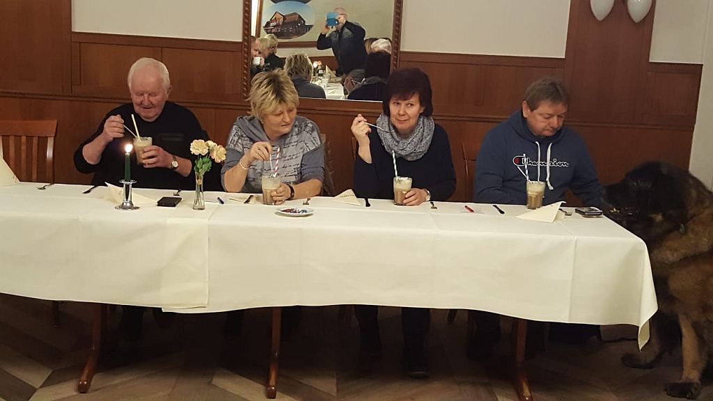 Zurück beim Ausgangspunkt ging es dann weiter nach Lützow in die Gaststätte „Zur scharfen Kurve“. Hier war ein Extraraum für uns und unsere Leonberger reserviert. Durstig vom vielen Austausch der Neuigkeiten, wurden erst einmal Getränke geordert.